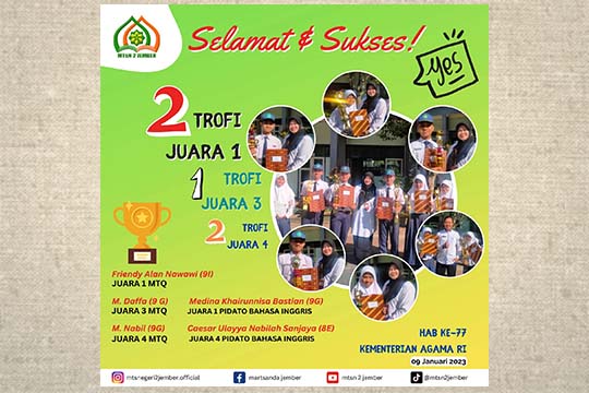 Puji syukur atas segala nikmat yang telah diperoleh selama ini. Khususnya lembaga madrasah kami, MTsN 2 Jember. Berbagai prestasi dan