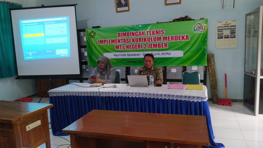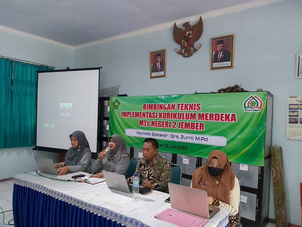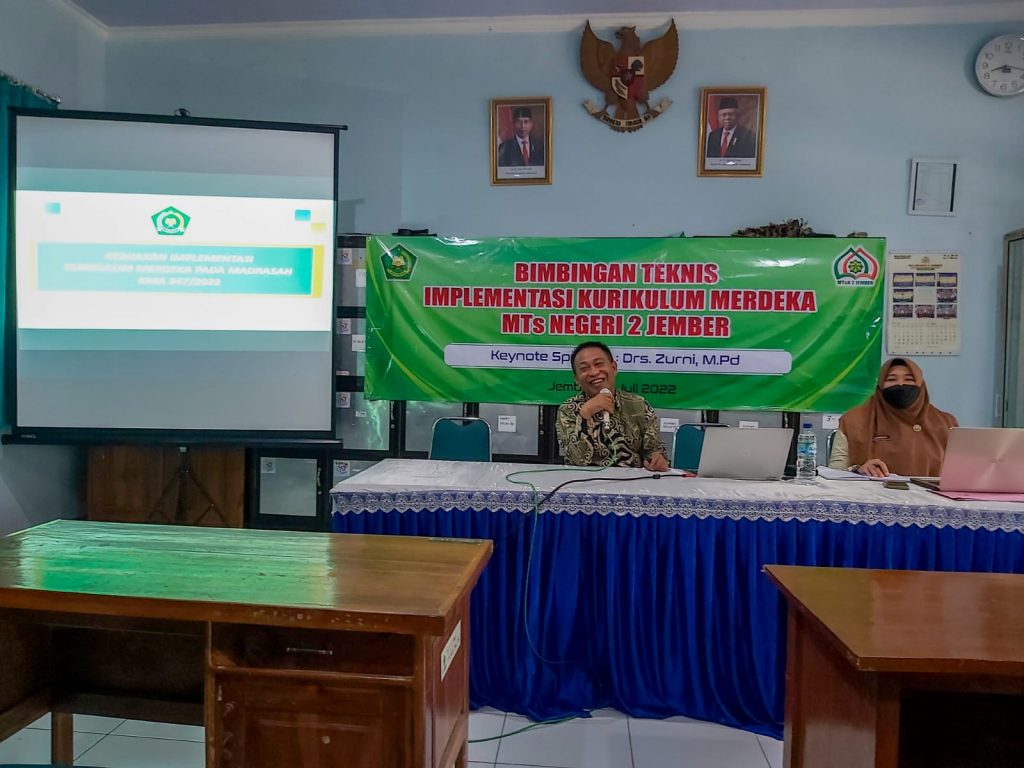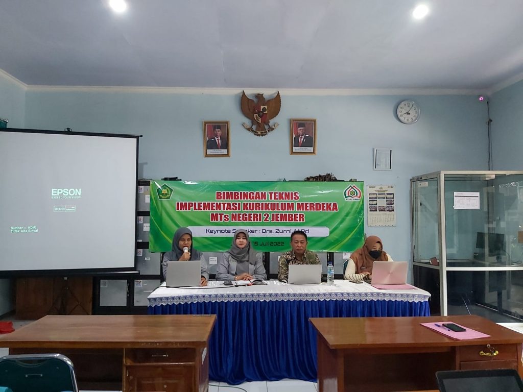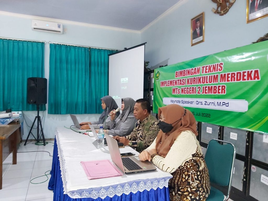 MTs Negeri 2 Jember menjadi salah satu pilot projects pelaksanaan Kurikulum Merdeka di lingkungan Kementerian Agama Kabupaten Jember. Beberapa langkah persiapan pun segera dilakukan. Salah satunya adalah dengan mengadakan Bimbingan Teknis Implementasi Kurikulum Merdeka, Jumat, 15 Juli 2022.