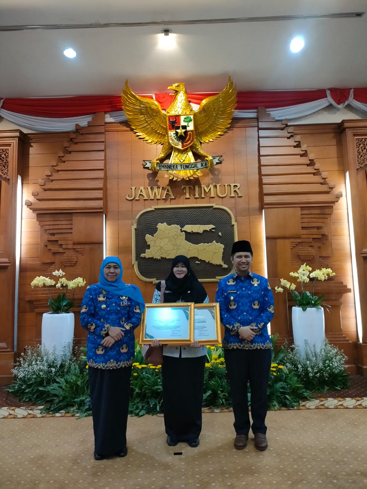 Dalam upacara peringatan Hari Guru Nasional (HGN) dan HUT KORPRI di Gedung Grahadi pagi ini, menerima penghargaan dari Gubernur Jatim Bu Khofifah.
