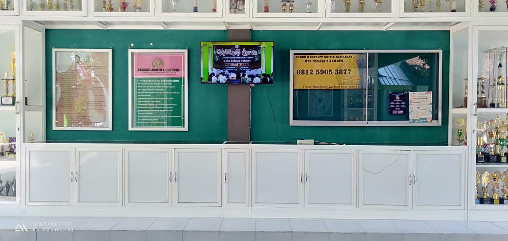 Mading Digital MTs Negeri 2 Jember, kemarin (Rabu, 3 Agustus 2022) resmi dioperasikan. Media berbentuk televisi ini sengaja dipajang di dekat pintu gerbang untuk memudahkan masyarakat mengakses setiap informasi yang ditayangkan.