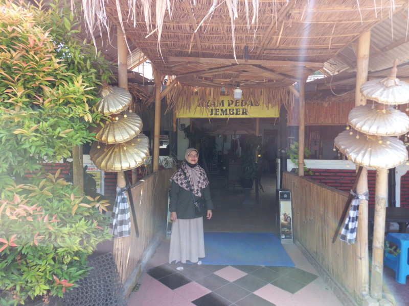 Rumah makan yang kami kunjungi adalah “Ayam Pedas Jember” yang berada di Jalan Raya Kencong Nomor 2 Mlokorejo. Letaknya sangat strategis, tepat di pinggir jalan raya sehingga mudah dijangkau dari berbagai arah. Suasananya pun nyaman banget. Banyak bunga dan pepohonan yang menghias halaman sehingga terkesan sejuk dan rindang. Fasilitas yang disediakan juga cukup lengkap. Dari tempat duduk yang bervariasi. Ada yang menggunakan kursi dan meja. Bagi yang ingin lesehan pun disediakan tempat khusus, baik lesehan kecil untuk sekeluarga maupun lesehan untuk rombongan dalam jumlah yang cukup besar. Ada juga fasilitas karaoke, kamar mandi, juga mushalla.