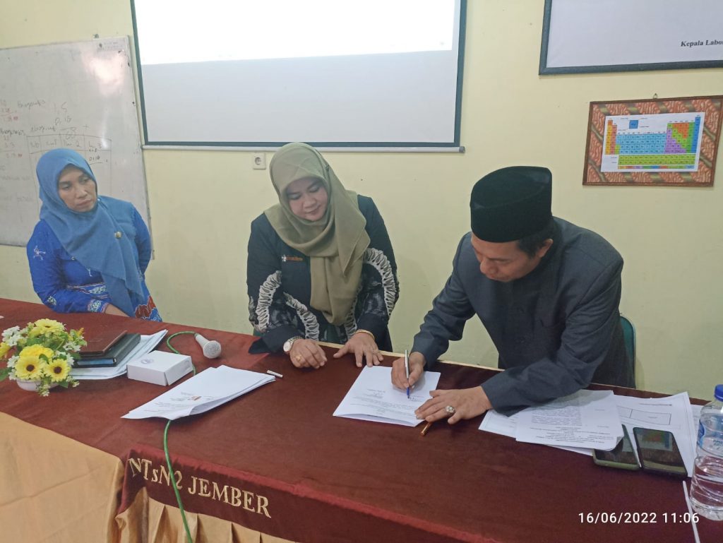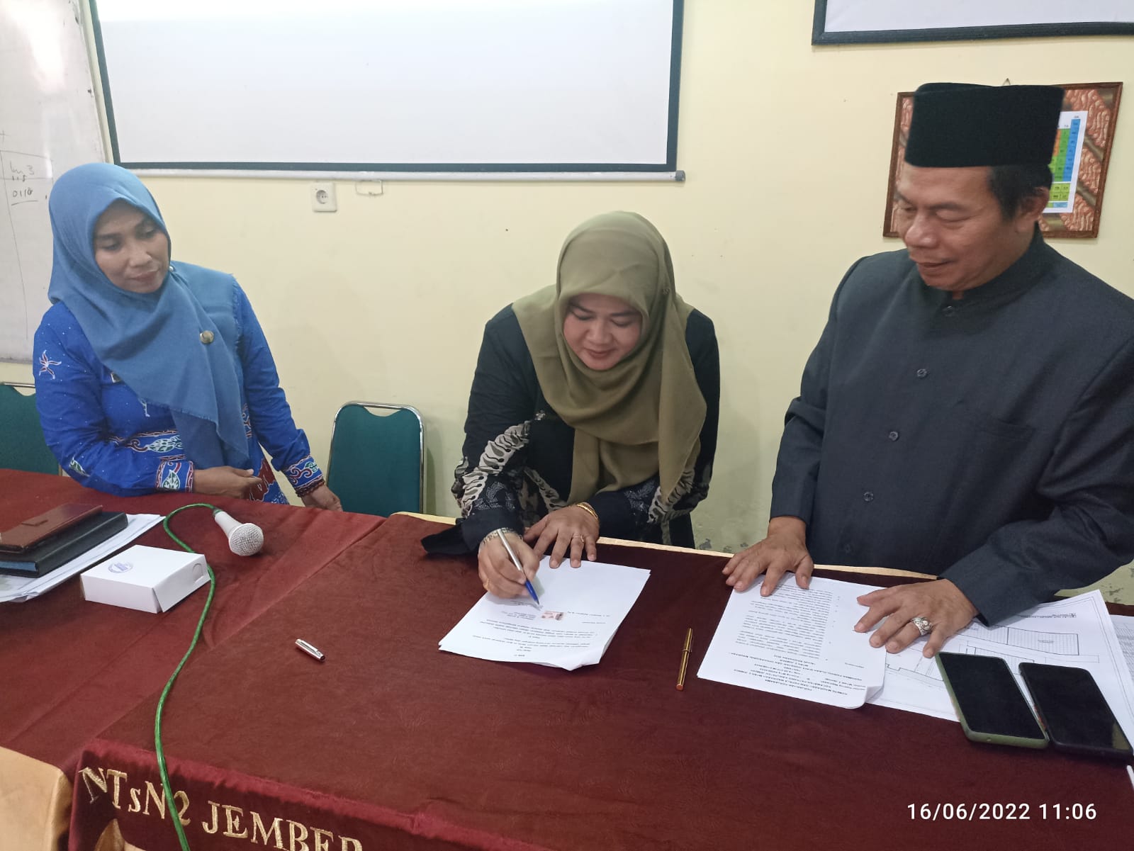 Bertempat di Laboratorium IPA pada hari Kamis, tanggal 16 Juni 2022 dilaksanakan Rapat Koordinasi Komite dengan Jajaran Pimpinan MTs Negeri 2 Jember. Hadir dalam rapat tersebut adalah Kepala Madrasah, Komite, Tim Keuangan dan Wakil Kepala Madrasah. Rangkaian acara rapat meliputi, pembukaan yang dilanjutkan dengan sambutan Kepala Madrasah dan Laporan Keuangan oleh Bendahara Komite. Acara berikutnya adalah pemaparan program Wakil Kepala Madrasah, rencana kenaikan gaji guru karyawan honorer, dan rencana pembangunan masjid. Sebelum acara penutup, ada penyampaikan prakata dari Komite serta penandatanganan Memorandum of Understanding. Rapat yang dipimpin oleh Waka Humas tersebut dimulai jam 8.00 dan diakhiri jam 11.30.